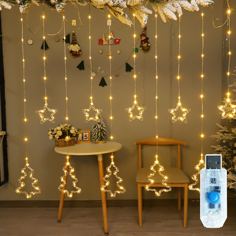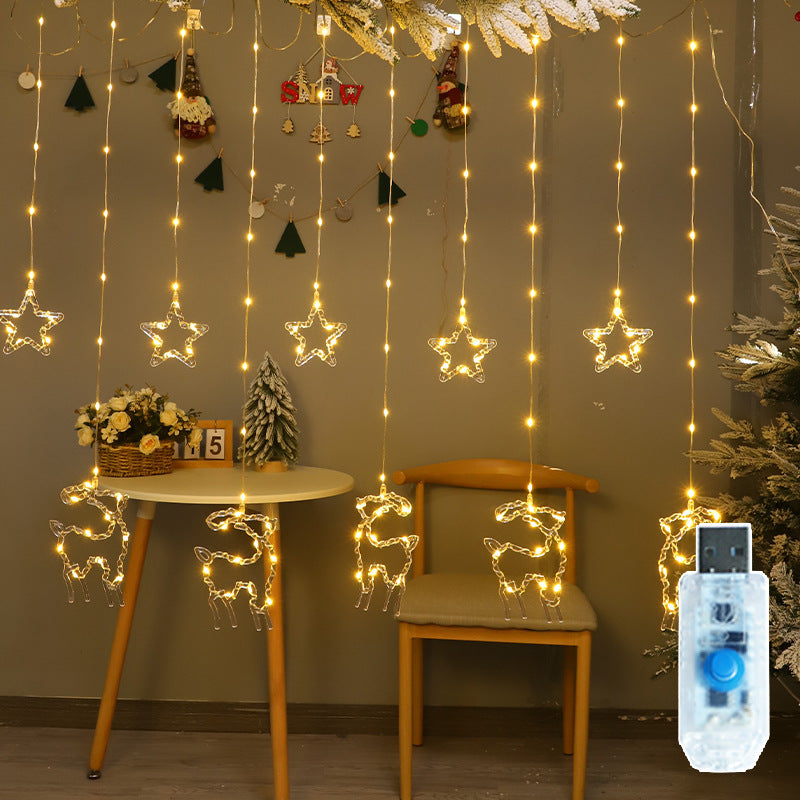 LED Christmas curtain lights USB remote control elk bell snowman Christmas tree shape window decoration curtain lights LED Christmas curtain lights USB remote control elk bell snowman Christmas tree shape window decoration curtain lights