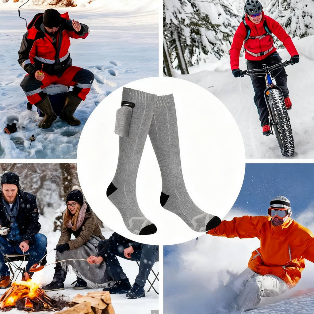 [Powerful Dual Battery System for Extended Wear] Powered by a 3.7V 4000mAh high-capacity power bank, these socks can withstand extended use without frequent recharging.